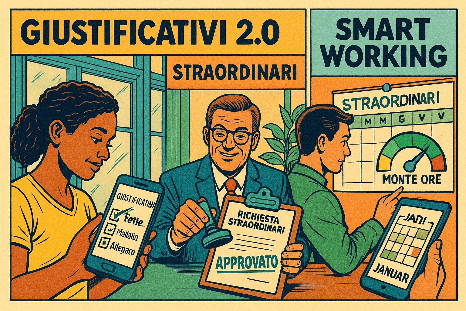 Quando i team crescono, la gestione del day‑by‑day non può dipendere da email e fogli sparsi. Ecco tre novità che semplificano il lavoro di HR, manager e dipendenti—con regole chiare e dati pronti per paghe e report.
