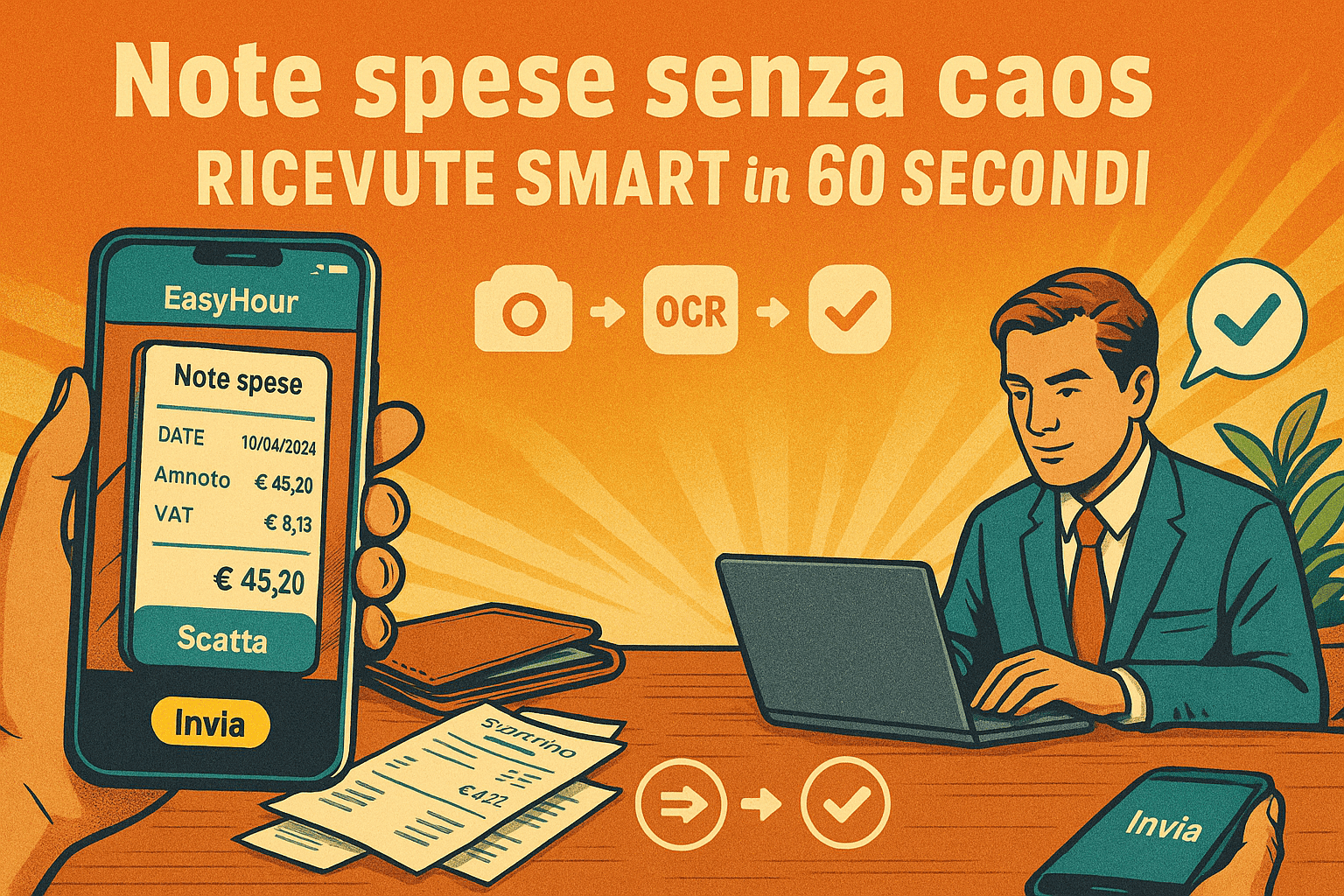 Vuoi dire addio alle ricevute perse? Richiedi una demo e prova l’OCR di EasyHour su 10 scontrini reali del tuo team!